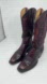 Preowned. These are custom-made. I have no size on these. Please refer to the photos for measurements. Shaft height is 13 1/2 inches 5 1/2 inches opening across the top. They are very narrow. Please notice slight marks on back of both heels as pictured. Very important on outside of left boot notice small hole as pictured. These are sharp boots. They just need to be repaired.