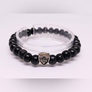 Men's bracelet beaded cross black new e15