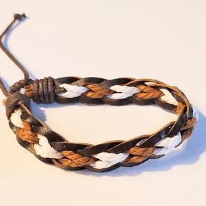 Men's bracelet leather braided brown new d68