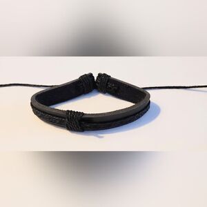 Men's bracelet leather layered black new d38