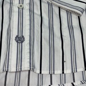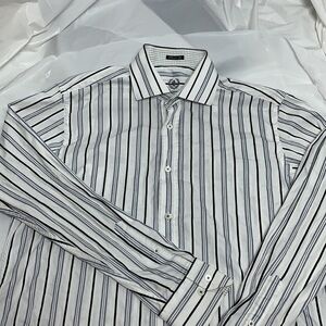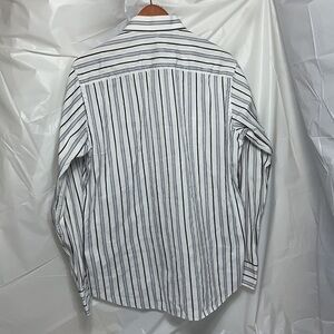 Men’s bugatchi white blue vertical stripe button down long sleeve shirt size M