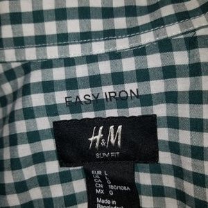 Green and white plaid button down, slim fit, size L, hardly worn in great condition