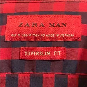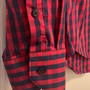 Navy blue and red checkered button down.