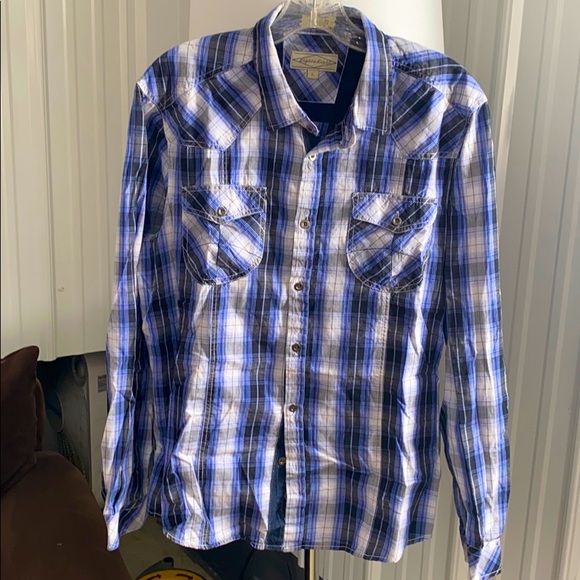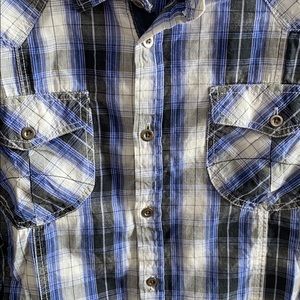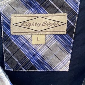 Eight eight Men’s size large button down. Perfect pre owned condition. Blue, black, gray and white. Very nice shirt. 100% cotton.