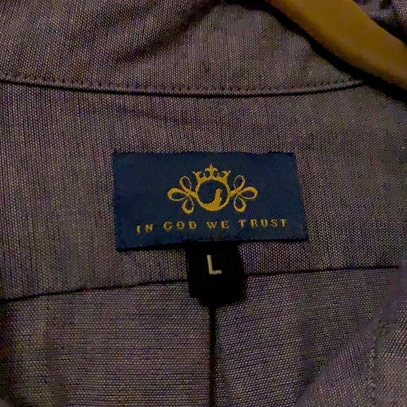 Size Large men’s button down purchased at In God We Trust a boutique in Brooklyn NY. Great condition only worn a few times
