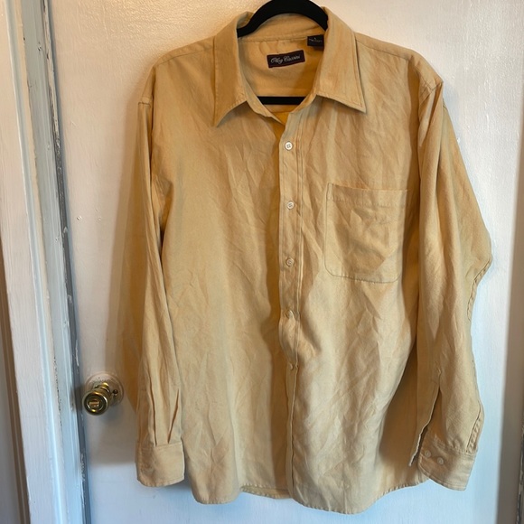 Mens button down shirt: Oleg Cassini. Yellow size large