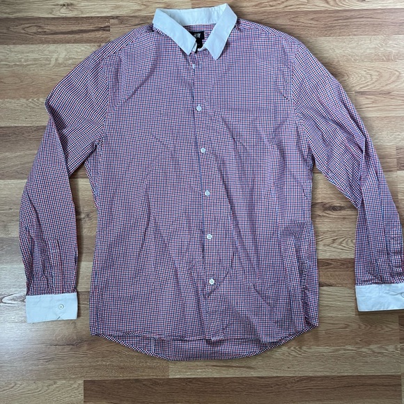 Mens H&M checkered buttons down. Red white & blue. Can be dressed down or up! Worn but in great condition!