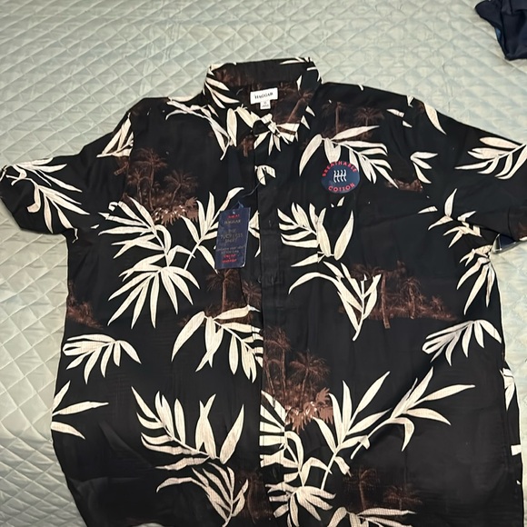 Black and tan button down tuckless shirt