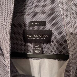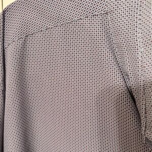 Men’s button down, lightweight fabric, color is a dark red/brown and white.