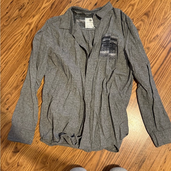 Long sleeve grey button down. Has heathered look