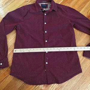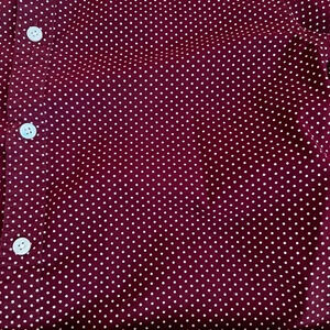 Mens button down shirt, size small. Maroon and white polka dots. In excellent used condition, no rips tears or stains.