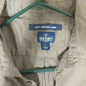 Gray. Never worn. Washed and hung in closet. Slim fit