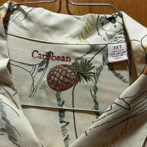 Men’s button-down camp shirt. No pocket preowned size 3 XT 70% silk 30% cotton split bottom. Approximately 29 1/2 inches pit to pit. 36 inches long