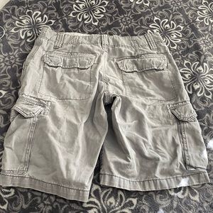 Men’s cargo shorts. In good condition! One area of the shorts has a light white stain about the size of a dime or less. Perfect for outdoor activities, hiking, fishing, hunting, or casual wear.