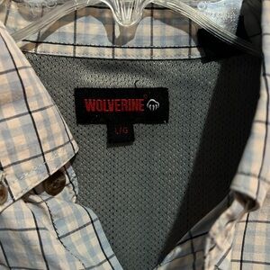 Men’s casual button down shirt Size: L Color: blue and beige Short sleeve