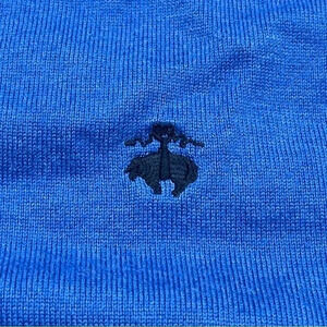 Men’s cobalt blue Brooks Brothers 100% supima cotton sweater vest. Large. Machine wash or dry clean. Contrasting navy logo on front left chest, v-neck. Smoke free home. EUC.