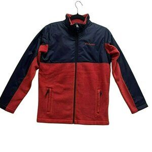 Mens columbia Basin Butte fleece full zip Red And Navy Blue Cozy New NT Size L.