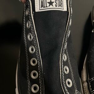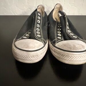 Converse shoes No laces style In good used condition * was not sure how to clean off the white areas.