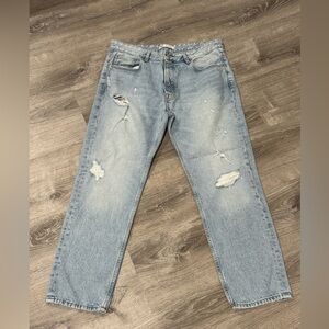 Distressed light blue straight leg jeans from Zara. I included measurements in photos, if more are needed just let me know. size 36’’