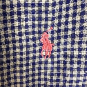 Ralph Lauren lightweight soft double lined button down shirt perfect for spring and summer very soft material blue gingham size xxl preowned great condition