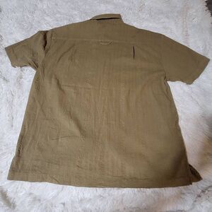 Polo olive Button front embroidery print with one chest pocket classy look, boho,bohemian, western, formalwear,casual,preppy, breathable,y2k no inside tag.