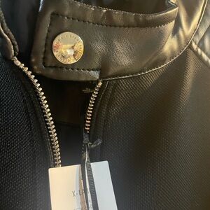 Men’s faux, leather jacket, stone, falcon, black men’s size XL new with tags