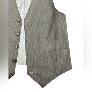 Men’s fine wool pinstripe v neck button down vest charcoal gray. Menswear. Euc