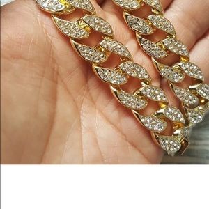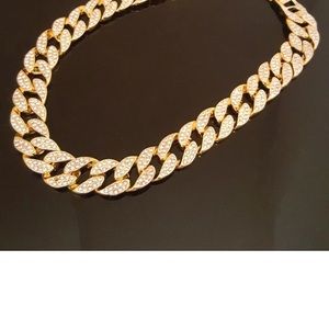 The piece featured here is made with cuban style, thick links. each one covered with cubic zirconia accents through out the chain.