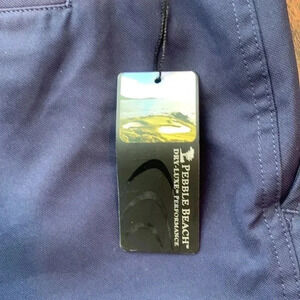 Pebble Beach Dry-Luxe Performance men’s golf shorts button waist, zipper front, button back pockets,utility pocket on front. I also have the same shorts in Gray pair and Tan pair are both brand new without tags.