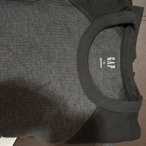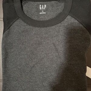 Men’s gray and black waffle knit long sleeve thermal shirt from Gap.