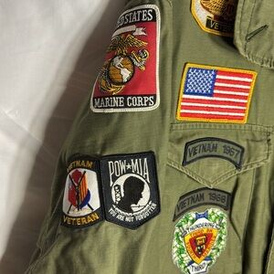 Men’s green marine corps USMC Vietnam veteran coat jacket patches large