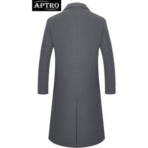 Men's grey Luxury Full Length Trench Coat Long Wool Overcoat Winter Windbreaker