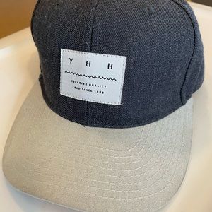 Mens grey and blue/denim colored hat. One size fits all. In very good condition. Only worn a few times. No stains or damage.