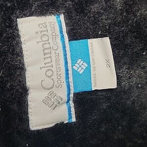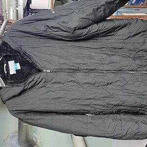 2xl Columbia men's furry lined full zip jacket. Has a hoodie and zip up pockets. TTS. Rain coat material on the outside and sleeves lined w/ the same material.