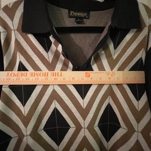 keywords: black, brown pattern sweater buttoned button diamonds, tan, gold, retro, vintage look, mod, button up, long sleeve shirt mens 60's 70's 80's 90's