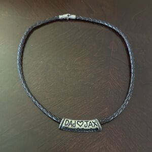 Men’s leather braided necklace brown with “Dad❤️JAX” pendant