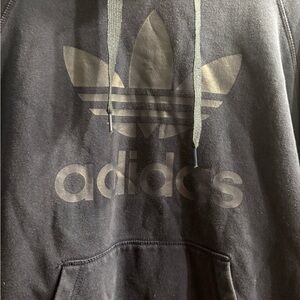 Men’s long sleeve Adidas pullover hoodie with kangaroo pockets in navy Size LG