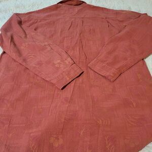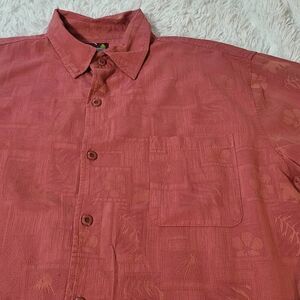 Mens long sleeve button-up Palm tree rust pocket shirt L