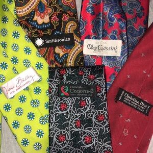 Mens lot of 5 business causal silk ties -Smithsonian -Oleg Cassini - Christian Dior- Costantino- Vera Bradley