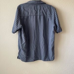 Size medium. No flaws. Has the blue print. Button front casual shirt