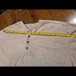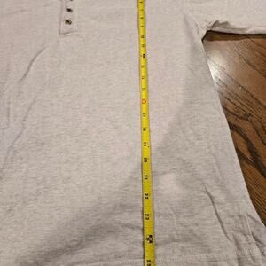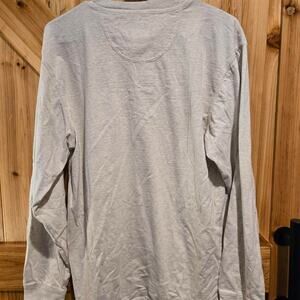 mens long sleeve Eddie Bauer shirt. The color is like a whitish Grey. measurements length 26 in, arm pit to arm pit 20 in, shoulder to shoulder 18 in, sleeve length 23 in. weather