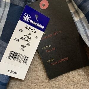 Men’s mk Machine Blue and Gold Plaid Button Down Shirt NWT size XXL