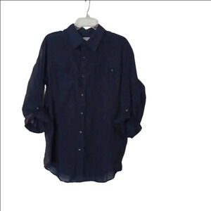 rarely worn.  soft fabric.  buttons, pockets.  nice dark blue color