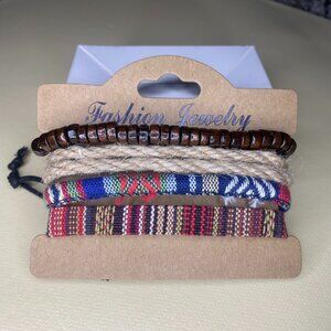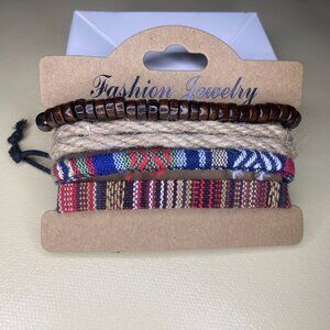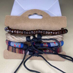 Add a natural, rugged, and bohemian vibe to any look with this 4-piece stackable bracelet set. This collection features organic textures and rich colors, perfect for a casual, layered style.