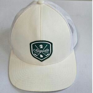 Cap #1 is made by Pacific Headwear. It’s white with a mesh back and a plastic adjustable strap. The front features a green Augusta logo with crossed golf clubs and an image of the state of Georgia.