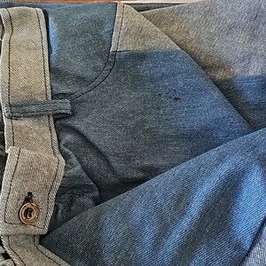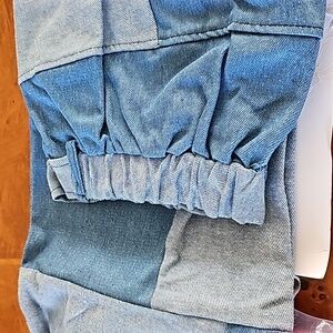 smiffys costume 60s / 70s/80s..mens denim flare with patchwork detail.New in package. never worn .but has a small black spot ..elastic band waist