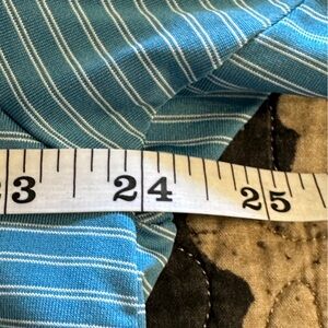 Men’s Ben Hogan polo shirt. This shirt is soft and lightweight. It is a size XL. Blue in color with white stripes through it. Measurements and materials are shown in the pictures.
