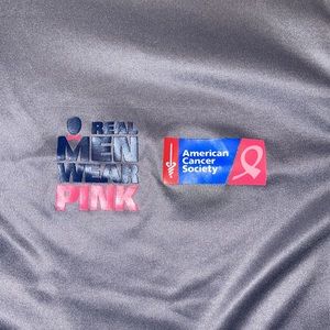 Gray quarter zip pullover with Real Men Wear Pink logo in excellent used condition-only worn twice
