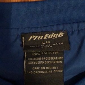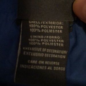 Has the KY LOGO. measures about 65 inches from shoulder to shoulder. About 75 inches long. Has pockets. One pocket has a seam that didn’t needs sewing. Other than that great condition.