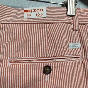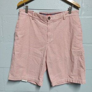 Men's size 34 waist 10.5 inseam. Brand new with tags. Red and white seersucker. Non smoking no pet household. 1.2 A